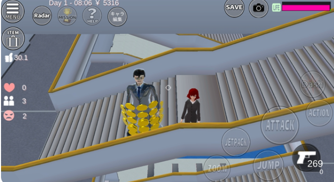 开放的世界各种各样的游戏可以实现,在新版的游戏中感受到超快乐的活动,表现日本有趣的校园生活,在地图上探索不同的工具,同时完成不同的事件。