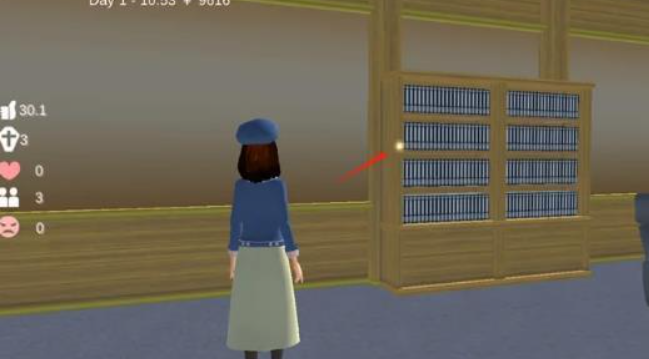 1、将税务署长打倒了之后,回到他的办公室内,能看到在书架上的边缘上,多了一个正在发光的机关。靠近之后,选择“动作”进行操作。