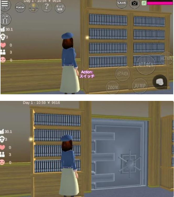 2、操作光点机关后,书架会往两边拉开,展示出金库的保险大门。