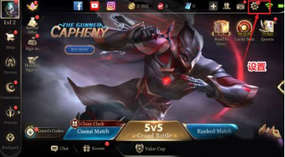 1、打开游戏后,进入游戏后,点开右上角的齿轮样设置。