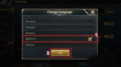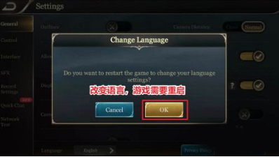 4、选择简体中文后,游戏提示需要重启,点ok重启游戏。