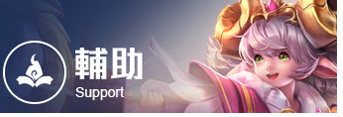 辅助在游戏中是一个相当独特的定位。辅助角的攻击能力不强,但技能效果具有牵制敌方、提高我方能力等特性,可以说是前中后期都不可或缺的重要角色。由于缺乏攻击手段,前期必须跟队友同行,以各项辅助技能协助队友取得击杀数优势。出装以防御装、回血或回魔装为主,提高自身生存力与续战力的同时,也代表能持续在战场上帮助队友。
