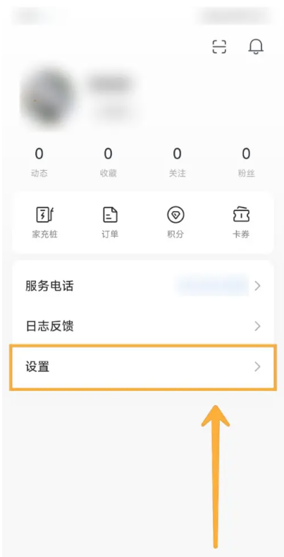 1、打开小米汽车App,在【我的】页面中点击【设置】选项。