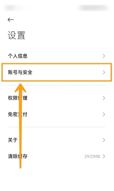 2、在设置页面中,点击【账号与安全】选项。