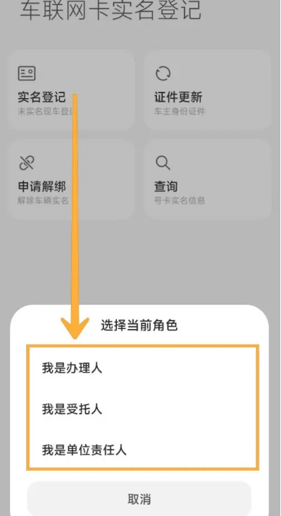 5、然后在弹出的页面中选择角色,再绑定车辆信息即可。