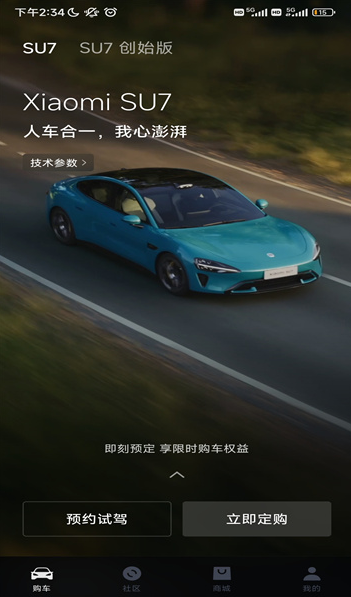 小米汽车app怎么预定车辆