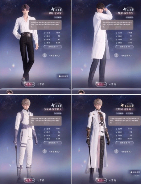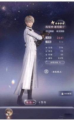 2、以沈星回为例,五星“逐光骑士”与四星“深空猎人”套装相比较:“逐光骑士”基础属性面板较高;