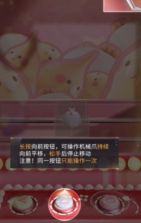 4、最后我们进行推进两次后操作机械爪对准礼物,按下红色按键,就能抓取成功。