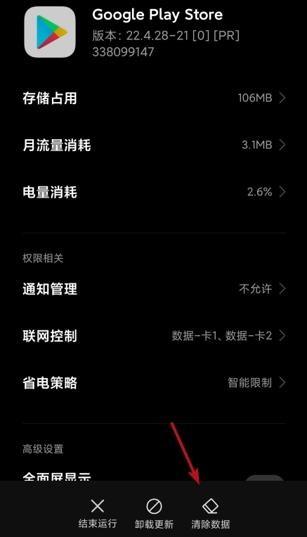 1、我们在应用管理中找到Play Store,然后点击清楚数据。