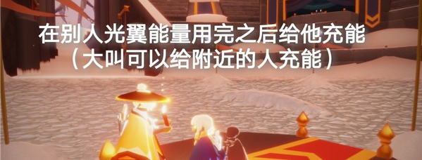光之翼没有能量的玩家会进行恢复能量,利用大叫、牵手、点蜡烛的的方式帮助恢复光之翼能量。