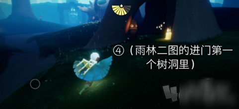 前往地图二图进门第一个树洞上。