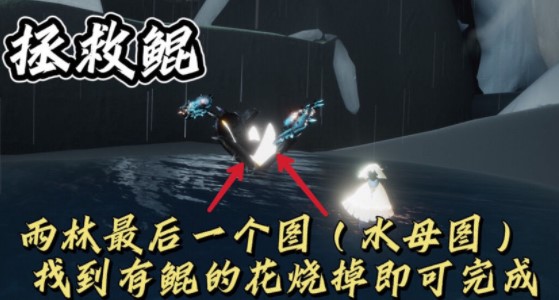 前往雨林的最后一个图找到呗黑暗植物困住的鲲烧掉植物即可。