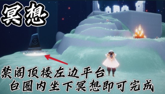位于禁阁的升降梯的顶层位置左边的平台就是冥想点。