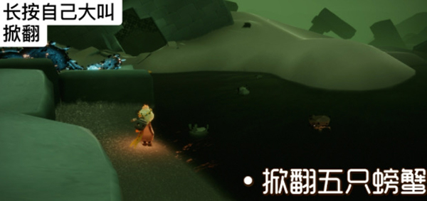 在地图中找到螃蟹利用大叫动作即可掀翻。