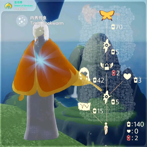 1、蝴蝶斗篷:兑换需要70根白蜡烛。