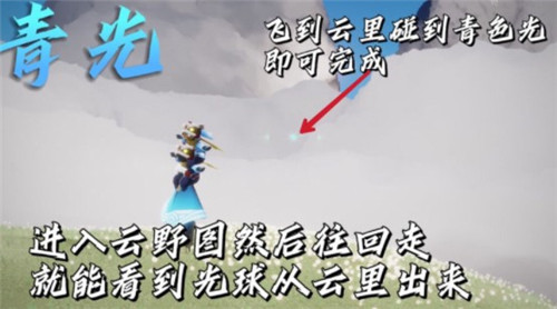 来到云野地图中在云中即可看见光芒,靠近即可收集。