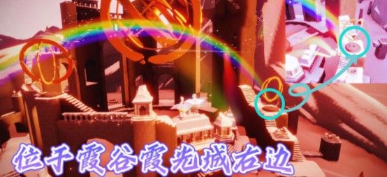 来到霞谷中在溜冰场位置右边会看见彩虹下方位置找到蜡烛。