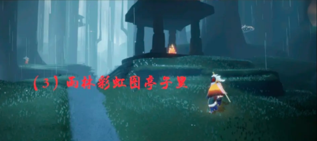 3、第三根蜡烛在雨林彩虹图的亭子内;