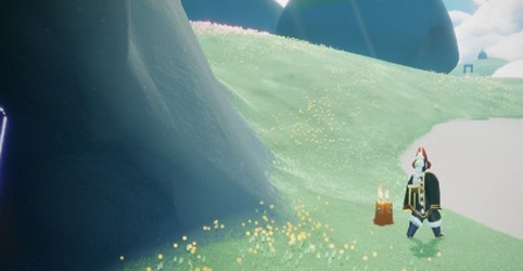 3、第三根蜡烛在云野图一的光之翼山洞门口,就在云层落地左侧山洞口;