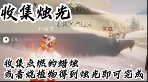 3、只要收集一些点亮的蜡烛就可以,或者是去雨林、暮土等地图中烧大花,这两种方法都可以完成任务。