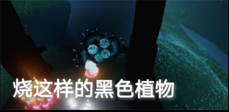 3、需要烧掉黑色的大花,这种植物雨林里面就有很多,在我们收集光芒的时候就可以顺道完成。