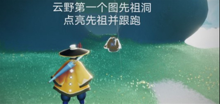 4、最后来到云野的第一张图,后前往有先祖的这座小山洞口处,点亮回忆先祖即可完成任务。