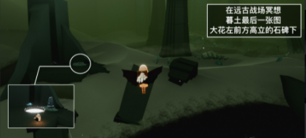 4、「在远古战场冥想」暮土终点图,大花左前方高耸石碑下。