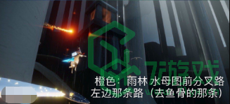 2、「收集橙色光芒」雨林水母图前左边分叉路(高台小金人附近);