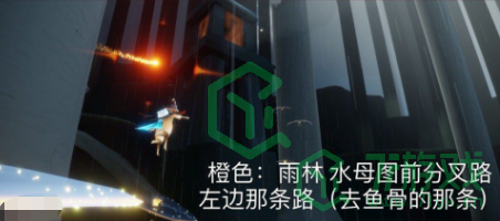 4、「收集橙色光芒」雨林水母图前左边分叉路(高台小金人附近)。