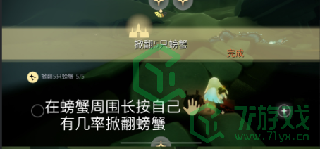 3、「掀翻5只螃蟹」在螃蟹周围长按自己大叫可掀翻螃蟹;