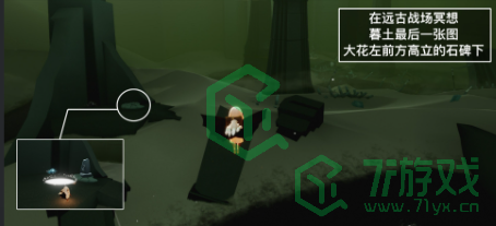 4、「在远古战场冥想」暮土终点图,大花左前方高耸石碑下。