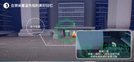 2、「在禁阁重温先祖的美好回忆」禁阁二层四人门内左边柱子后;