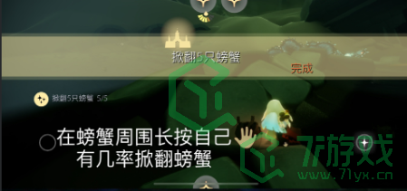 3、「掀翻5只螃蟹」在螃蟹周围长按自己大叫可掀翻螃蟹;