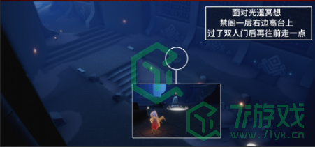 4、「在禁阁神坛冥想」在禁阁一层过了双人门再往前走一点的石碑前光圈处打坐并冥想。