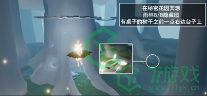 4、「在秘密花园冥想」在雨林8/8隐藏图内,内有桌子的树干右边石头上的石碑前光圈处打坐并留言。