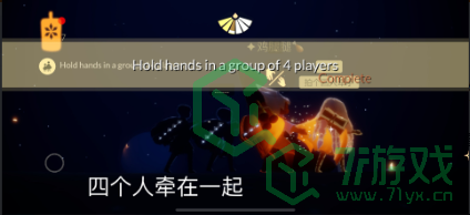 1、「四位玩家牵手组队」四个人牵在一起,也可通过重温表演季季节任务四完成;