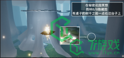 4、「在秘密花园冥想」在雨林8/8隐藏图内,内有桌子的树干右边石头上的石碑前光圈处打坐并留言。