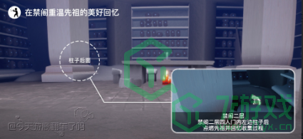 2、「在禁阁重温先祖的美好回忆」禁阁二层四人门内左边柱子后;