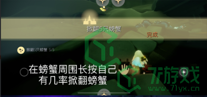 3、「掀翻5只螃蟹」在螃蟹周围长按自己大叫可掀翻螃蟹;