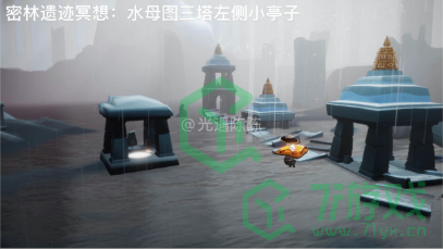 4、「在密林遗迹冥想」在雨林水母图中间四连亭左边的小亭子下石碑前光圈处打坐并留言。
