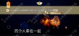 1、「四人牵手组队」四个人牵在一起,也可通过在表演季剧场右边洞口的火盆旁打坐重温季节任务完成。;