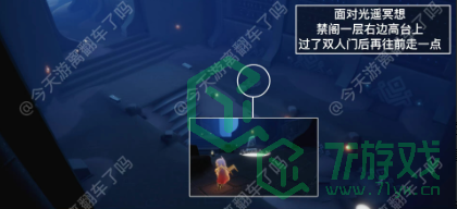 4、「在禁阁神坛冥想」在禁阁一层过了双人门再往前走一点的石碑前光圈处打坐并冥想。