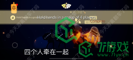 1、「四人牵手组队」四个人牵在一起,也可通过在表演季剧场右边洞口的火盆旁打坐重温季节任务完成;