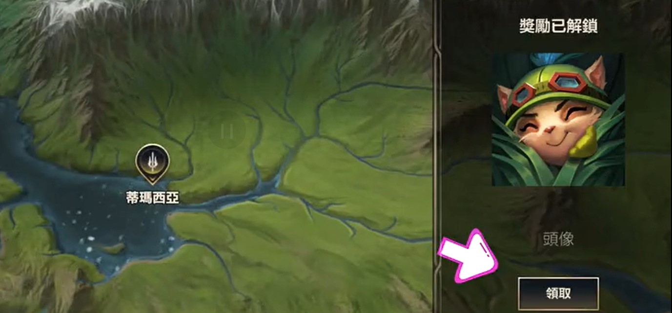 4、用户如果已经完成相关的区域解锁,即可点击“领取”获取提莫头像。
