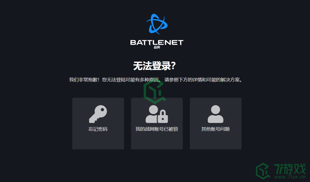 大家可以根据自己无法登录的原因,去选择对应的解决方案进入(战网入口:https://account.battlenet.com.cn)