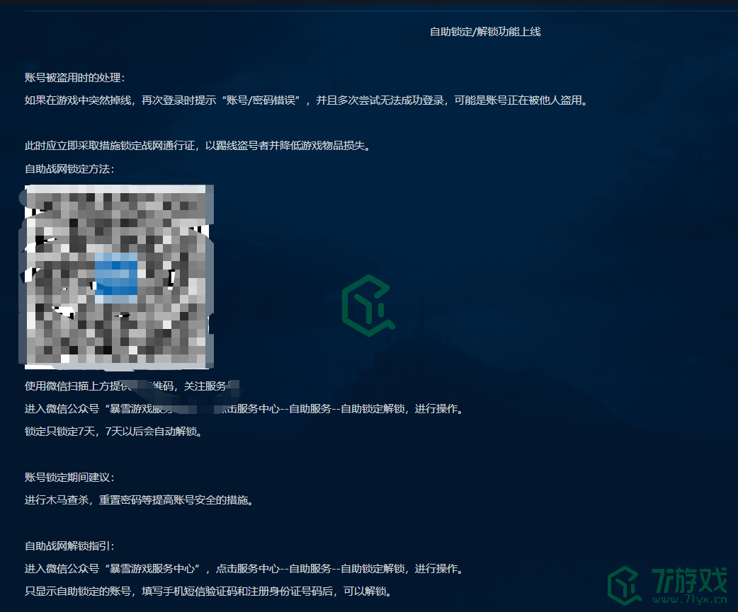 1、输入游戏账号发现被锁定,可以进入微信公众号“暴雪游戏服务中心”,点击服务中心--自助服务--自助锁定解锁,进行解锁操作。