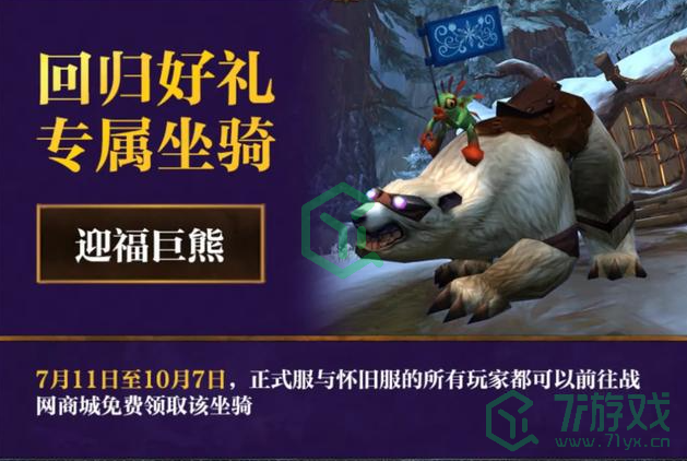 7月11日后进入到战网界面点击商城,找到迎福巨熊坐骑点击领取即可,按照流程操作;