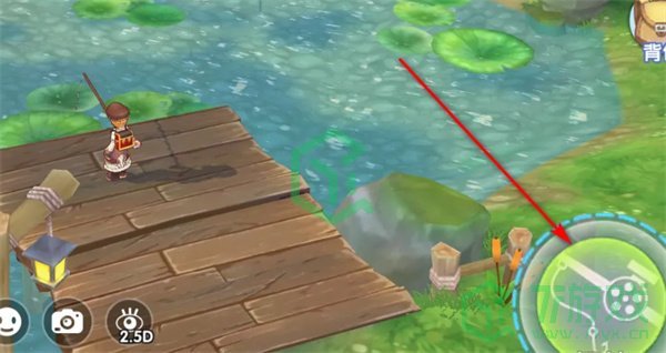 1、打开游戏地图,来到池塘这里钓鱼。