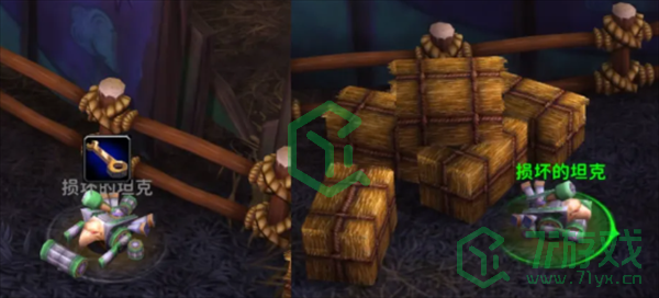 2、与他对话领取任务,在附近找到损坏蒸汽坦克进行维修。