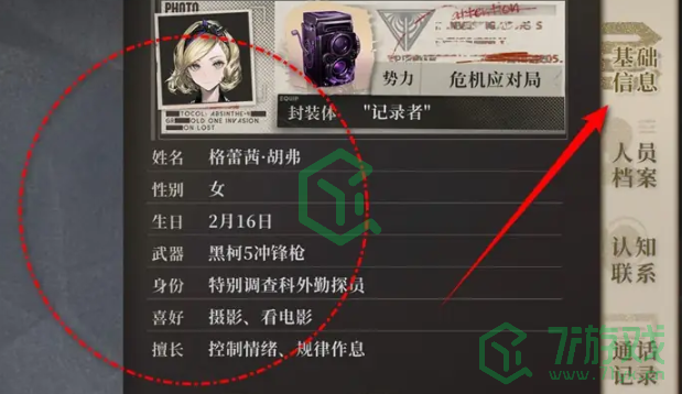 4、最后点击人物右侧的基础信息,就会自动出现该探员的基础档案